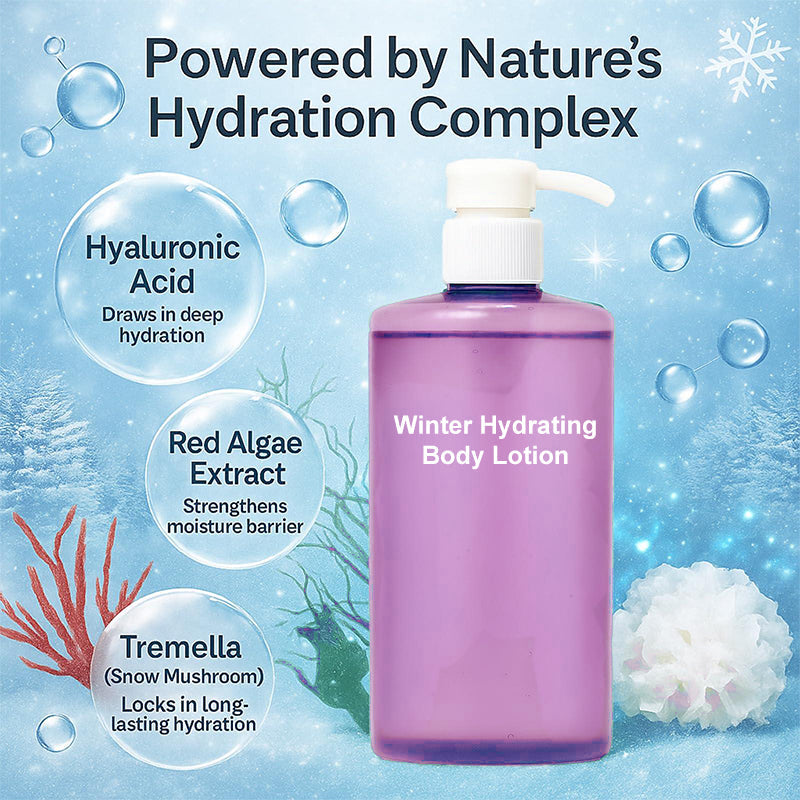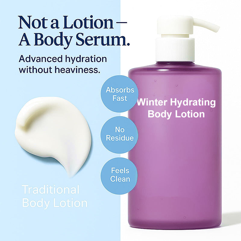 DEEP HYDRATION WITH HYALURONIC ACID - Infused with pure hyaluronic acid, this lotion attracts and locks in moisture, providing intense, long-lasting hydration to combat winter dryness. Your skin will feel supple, plump, and thoroughly revitalized all day.