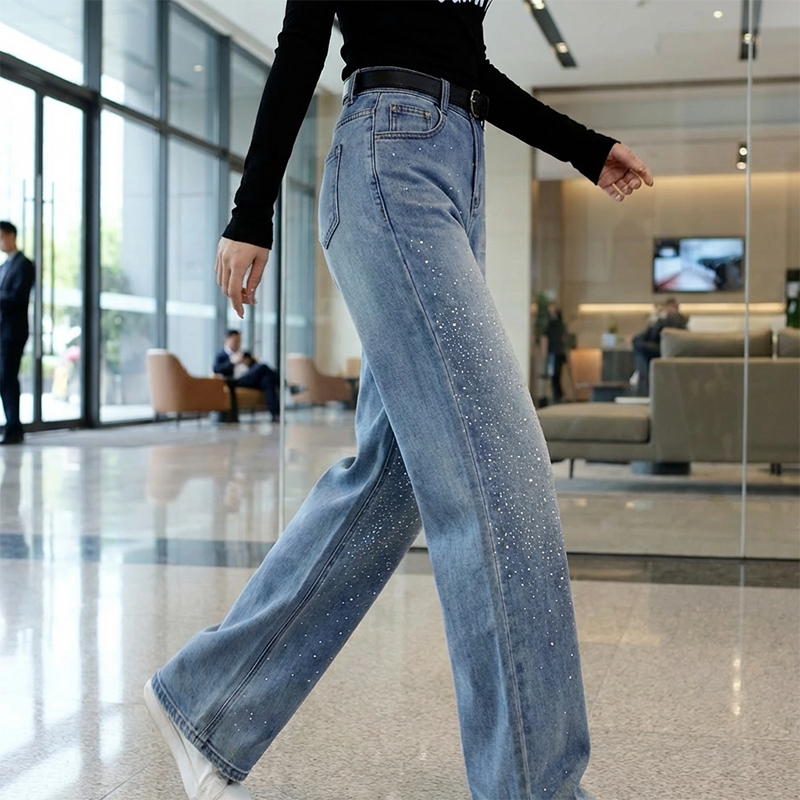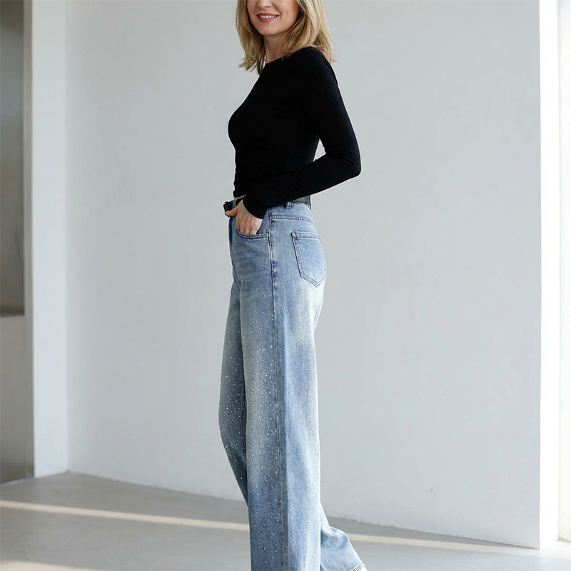 🎁Free Gift With Purchase 🎁 Women's Sparkling High-Waist Straight-Leg Denim Pants