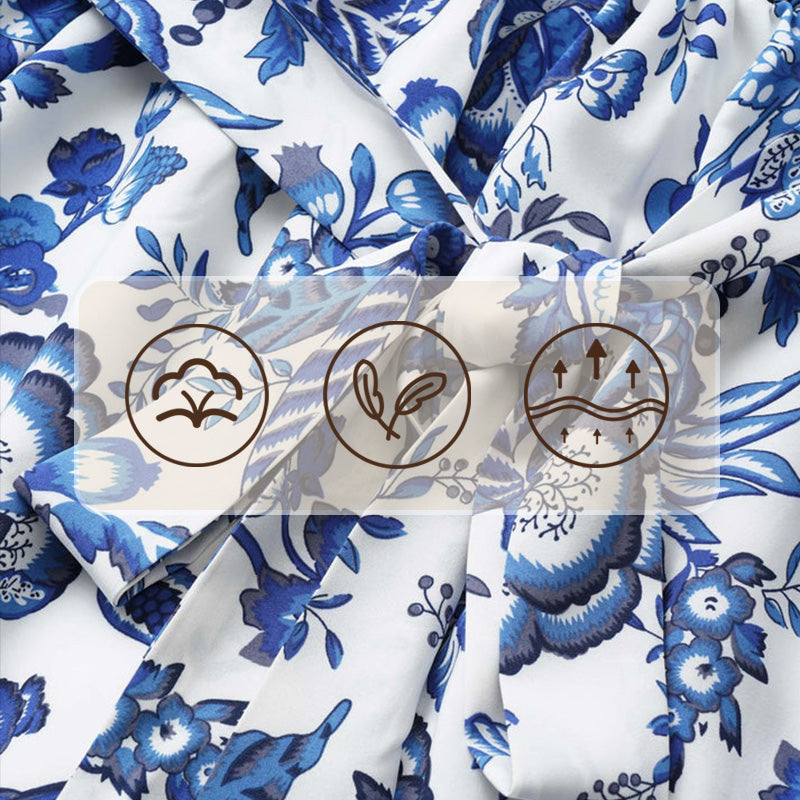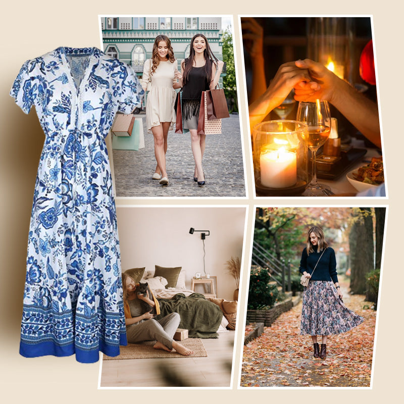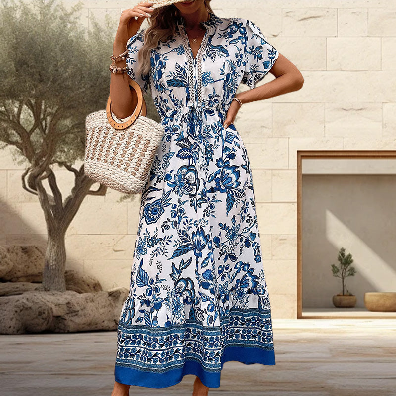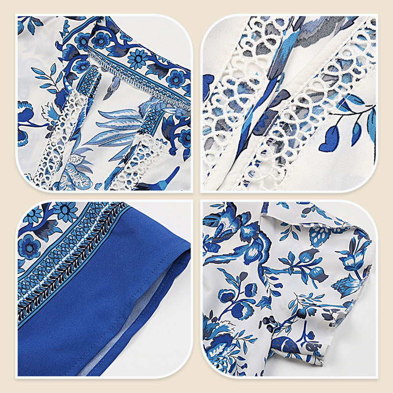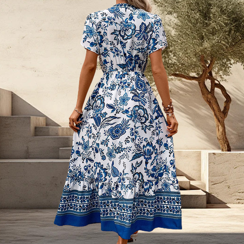 European blue printed dress, showcase your elegant charm! 🌹✨