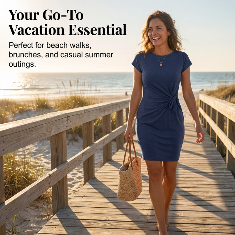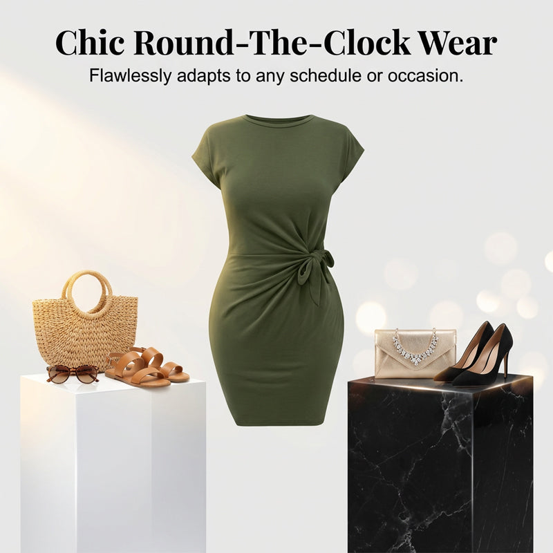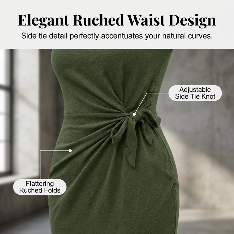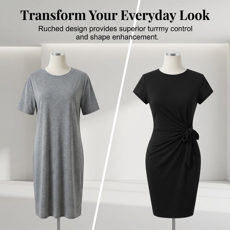 🎁Free Gift With Purchase 🎁 Casual Crew Neck Ruched Bodycon Mini Dress