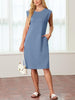 🔥Summer Sale 50% OFF💥Women Round Neck Loose Split Wrinkle-Free Midi Dress with Pockets