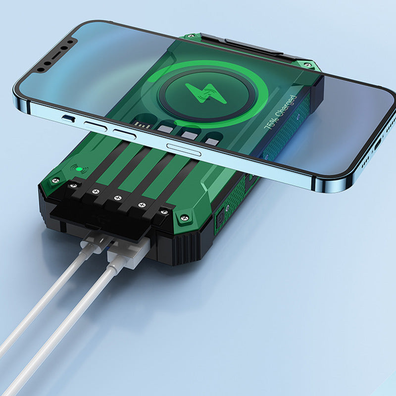 Stay connected, stay charged, and enjoy the great outdoors with our Solar Wireless Portable Power Bank. Stay powered up wherever you roam with our Solar Wireless Portable Power Bank. It's your reliable companion for all your charging needs, whether you're exploring the wilderness or navigating city streets.