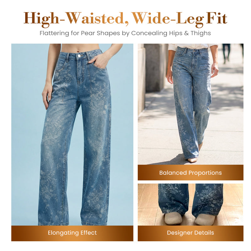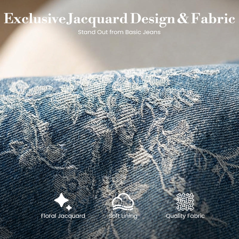 Women's Floral Jacquard Wide-Leg Denim Pants